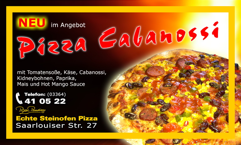 Pizza Paradieso, "Echte Steinofen Pizza", Saarlouiser Strasse 27, 15890 Eisenhüttenstadt, Telefon: (03364) 41 05 22